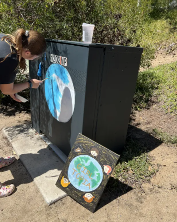 Girl Scout Troop 3143 had spent a year working with the City of Solana Beach and the Public Arts Commission to paint six utility boxes on San Andres and Highland Drive. The boxes at the top of the intersection near the golf course had become an eyesore, covered in graffiti and stickers.